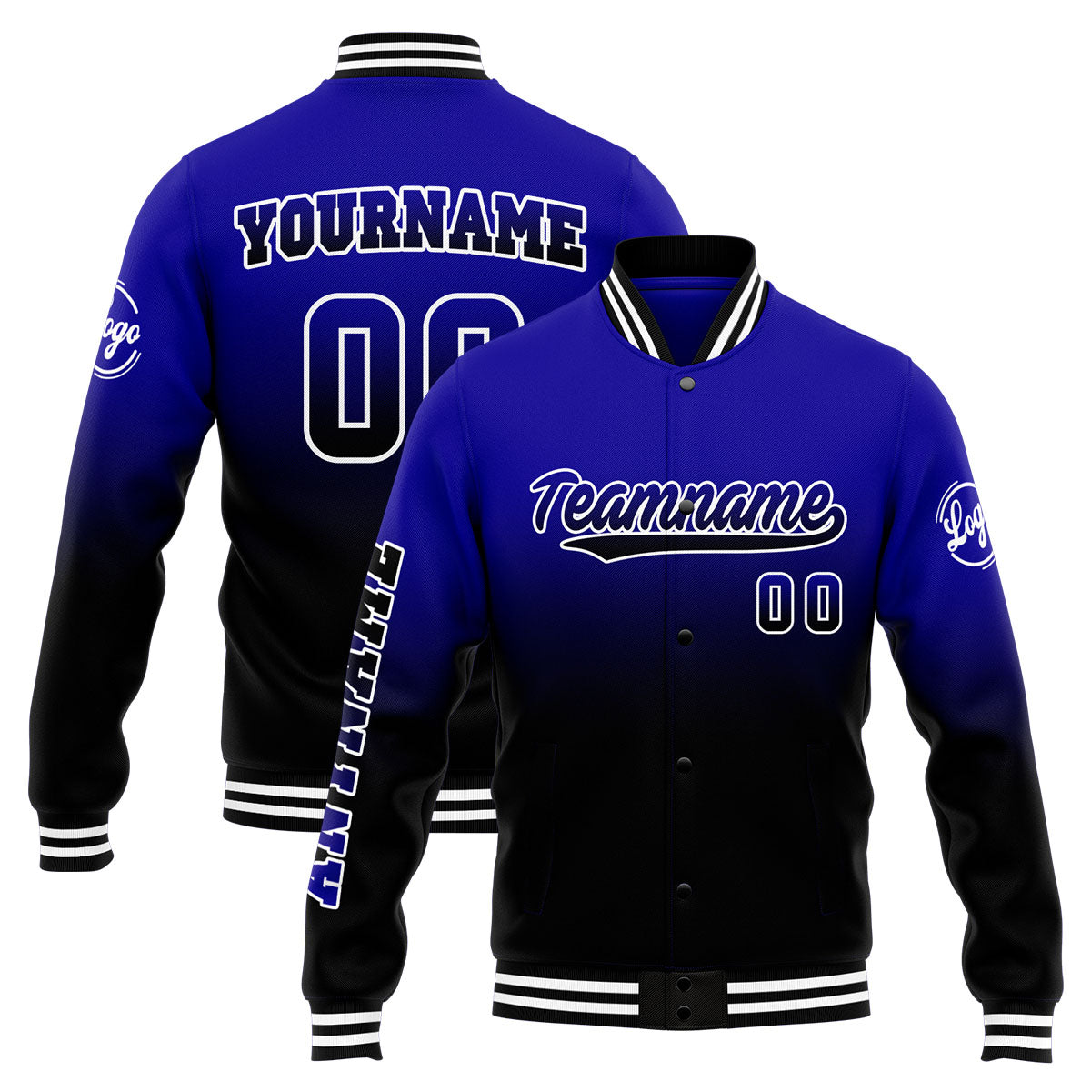 Custom Varsity Jacket Letterman Jacket For Men, Women And Youth Royal&Black