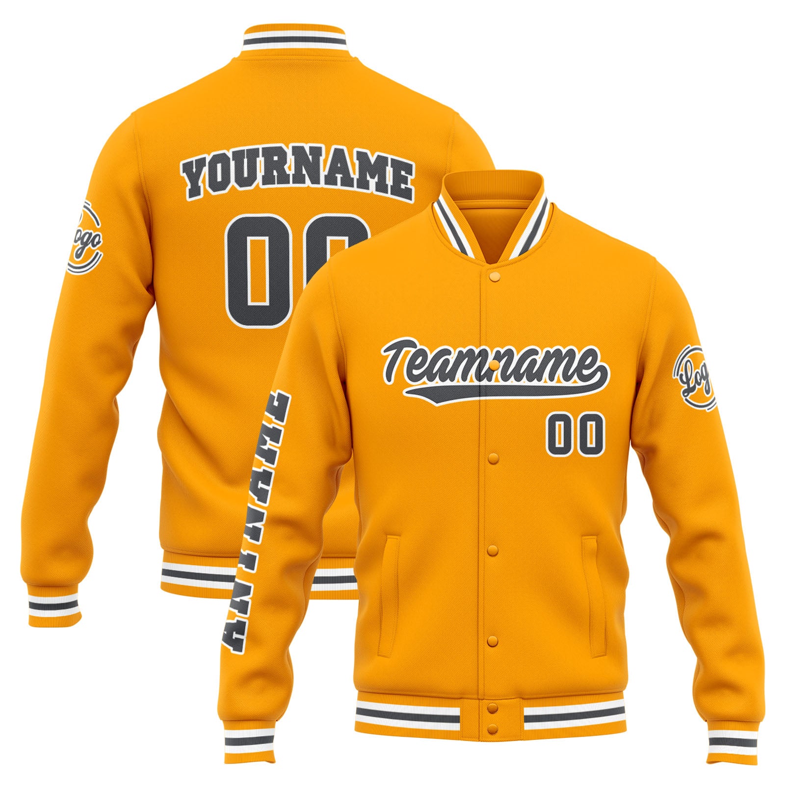 Custom Varsity Jacket Letterman Jacket For Men, Women And Youth Yellow Grey